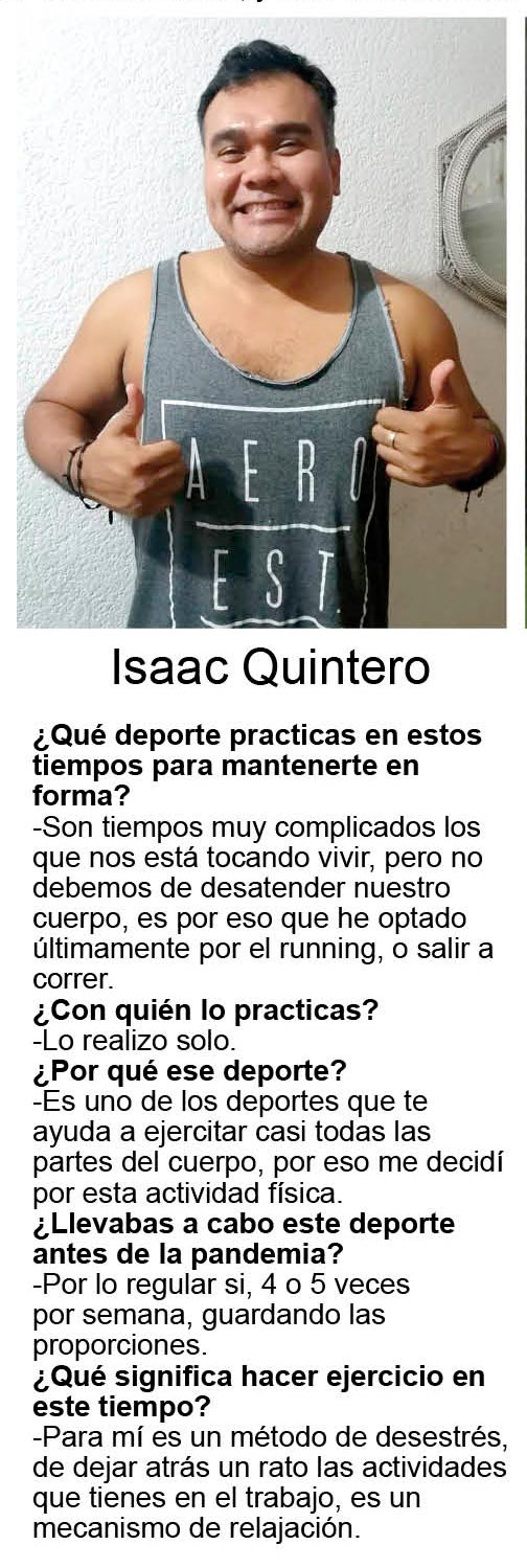 Llevamos a cabo un pequeño sondeo con algunos amigos lectores de Acapulco Club, tu revista juvenil, con respecto a qué tipo de ejercicio practican en esta cuarentena, y esto nos contestaron: