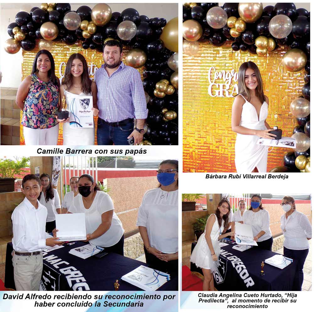 A su llegada, los chicos bajaban del auto al escuchar su nombre y antes de ingresar les aplicaban el protocolo de higiene, al igual que a sus acompañantes, después de recibir su diploma de la Generación 2019-2021, y a quienes cursaron primaria y secundaria en el colegio, les entregaron una medalla de “Hijo Predilecto”; las maestras de inglés les entregaban un “Oscar” miniatura por su dedicación y un cup cake como regalo. Después, se tomaban la foto del recuerdo con sus familiares que los acompañaron.