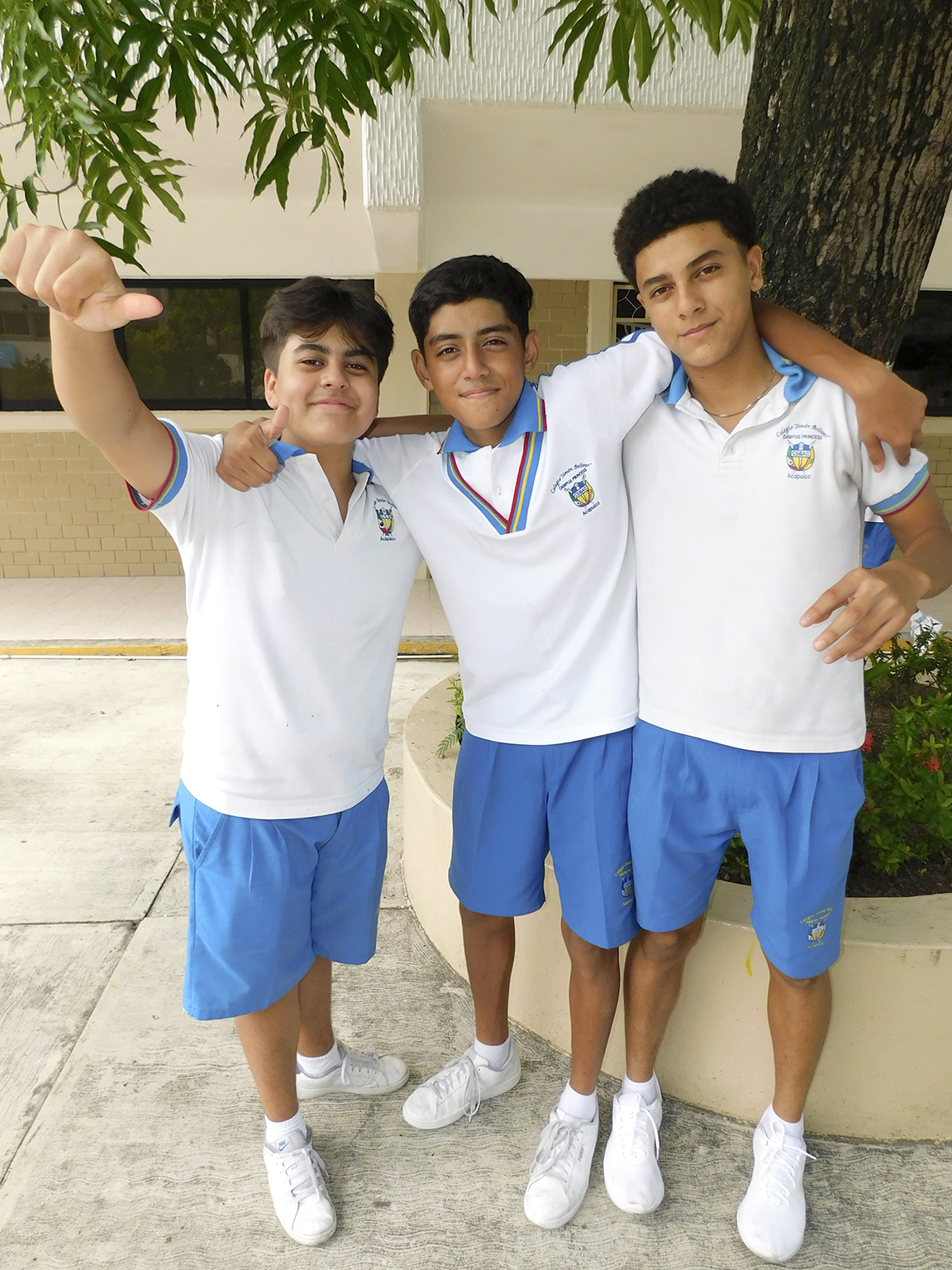 Con esto del regreso a clases, hemos estado recorriendo varios colegios, escuelas para saludar a nuestr@s amig@s de Acapulco Club, revista juvenil, así que no podía faltar visitar la Sección Secundaria y Preparatoria del Colegio Simón Bolívar Campus Princess, donde los encontramos en diversas actividades y puestos para dejarse tomar la foto que ahora estamos publicando. La verdad, los vimos muy contentos de volver a las aulas, de reencontrarse con sus compañeros los que ya van avanzados, así como felices de iniciar una nueva aventura escolar a los de recien ingreso.
