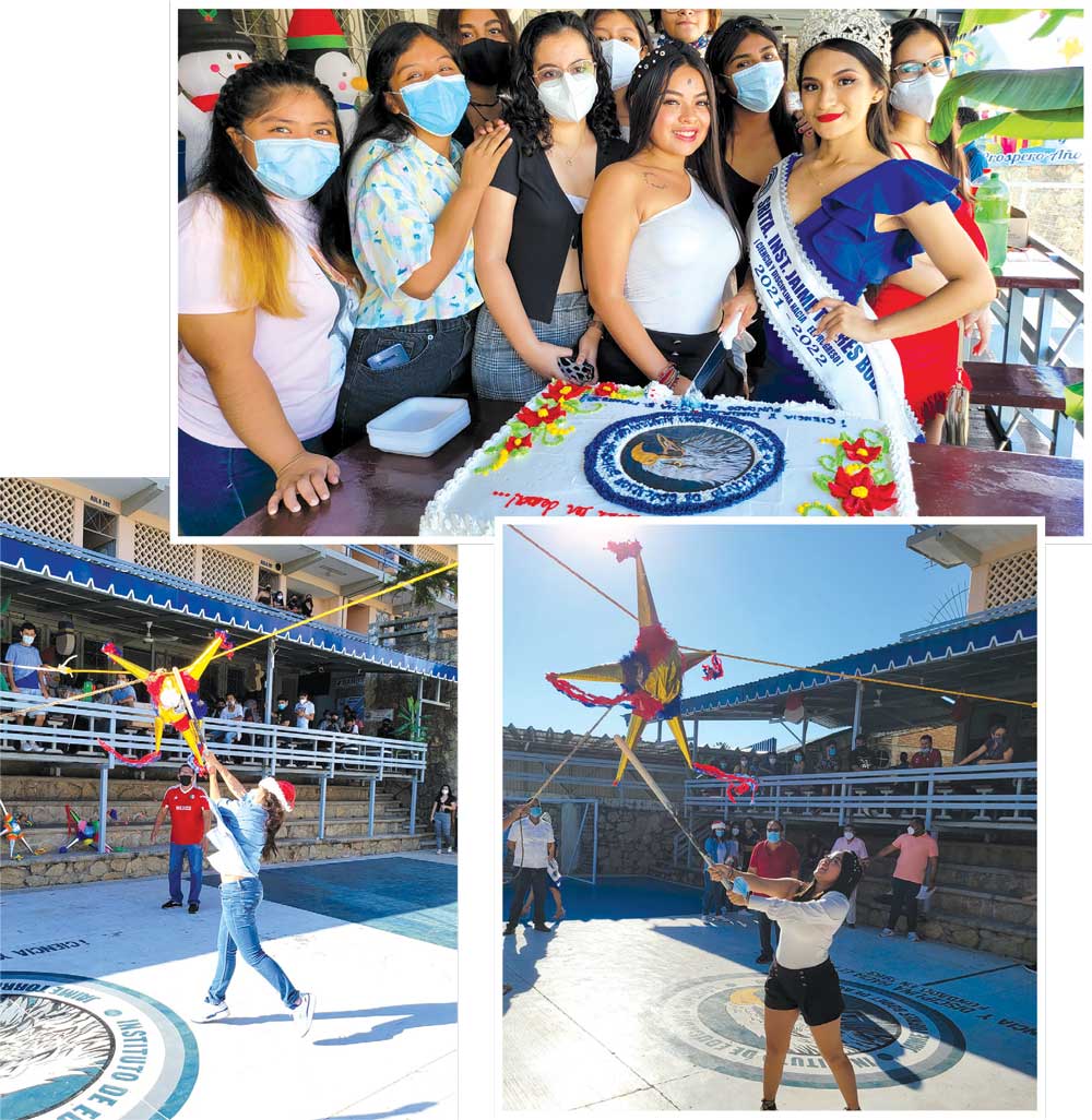 La recién electa Srita Inst. Jaime Torres Bodet, Abril Ivana Alvarado fungió como la anfitriona del festejo, siendo quien partiera el pastel e inició con la divertida quebrada de piñatas, en el sus compañeros estudiantes participaron de manera muy animada.