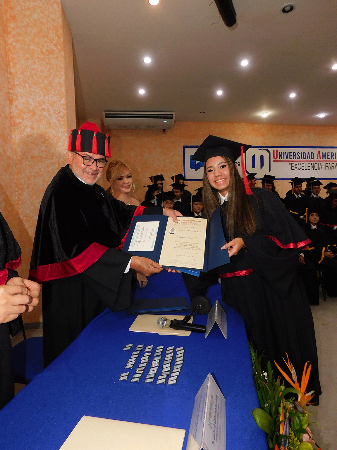 En ambas ceremonias estuvieron presentes el Dr. Mario Alejandro Mendoza Castañeda, Rector de la Universidad Americana de Acapulco, y el Dr. Leobardo Castañeda Hernández, Director de la Preparatoria UAA Plantel Acapulco, quienes dieron un mensaje de bienvenida y despedida a los graduados, agradeciendo la confianza de los padres de familiar por permitir que sus hijos concluyeran felizmente su bachillerato en la casa de estudios la Escuela Preparatoria UAA y reconociendo el talento y capacidad de los educandos que recién egresaban.