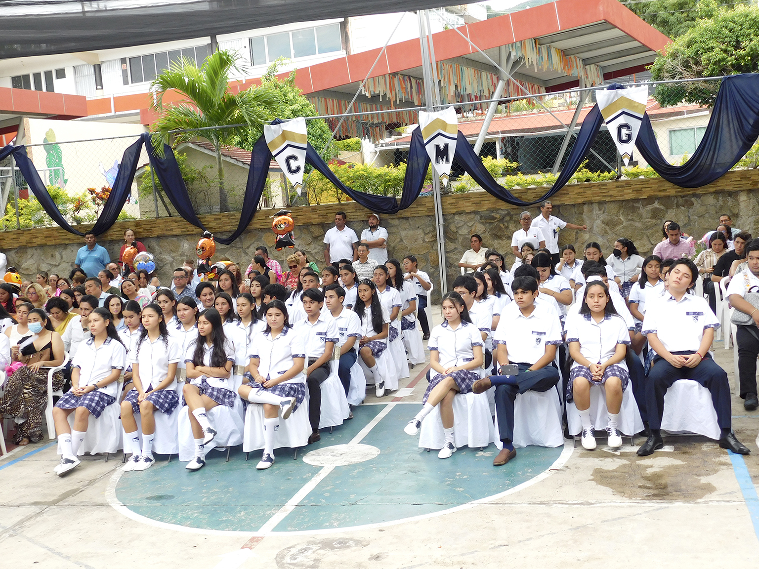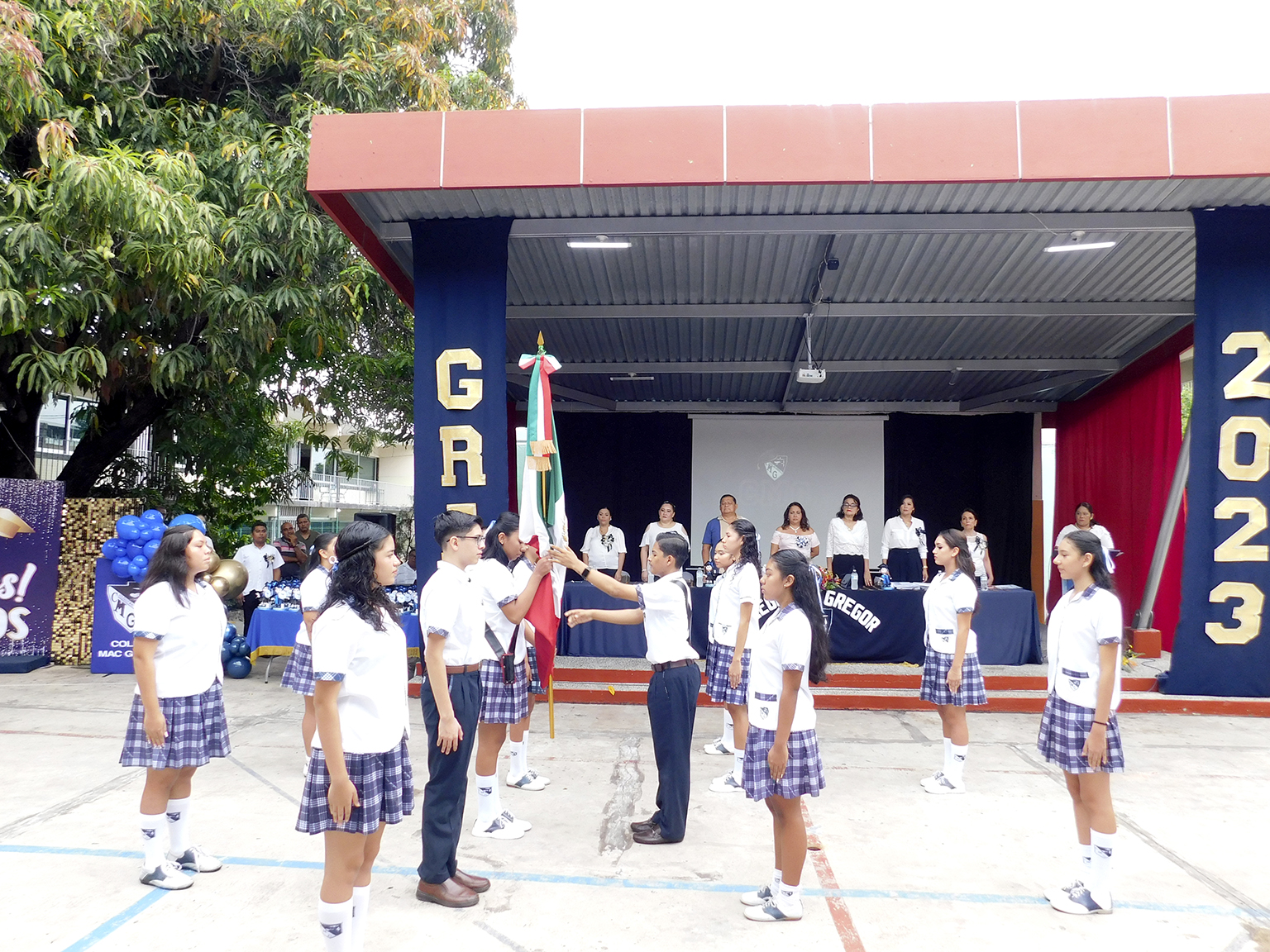 Previamente se realizó el tradicional cambio de escolta, rindieron honores a la bandera, la alumna Jaydy Mitchel López Vargas pronunció el juramento a la bandera y se entonó el himno nacional. Los alumnos Fernanda Sofía Serna y Daniel Mohedano Pérez, de 3o A y B respectivamente en representación de su generación dieron el mensaje de despedida.