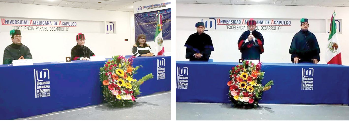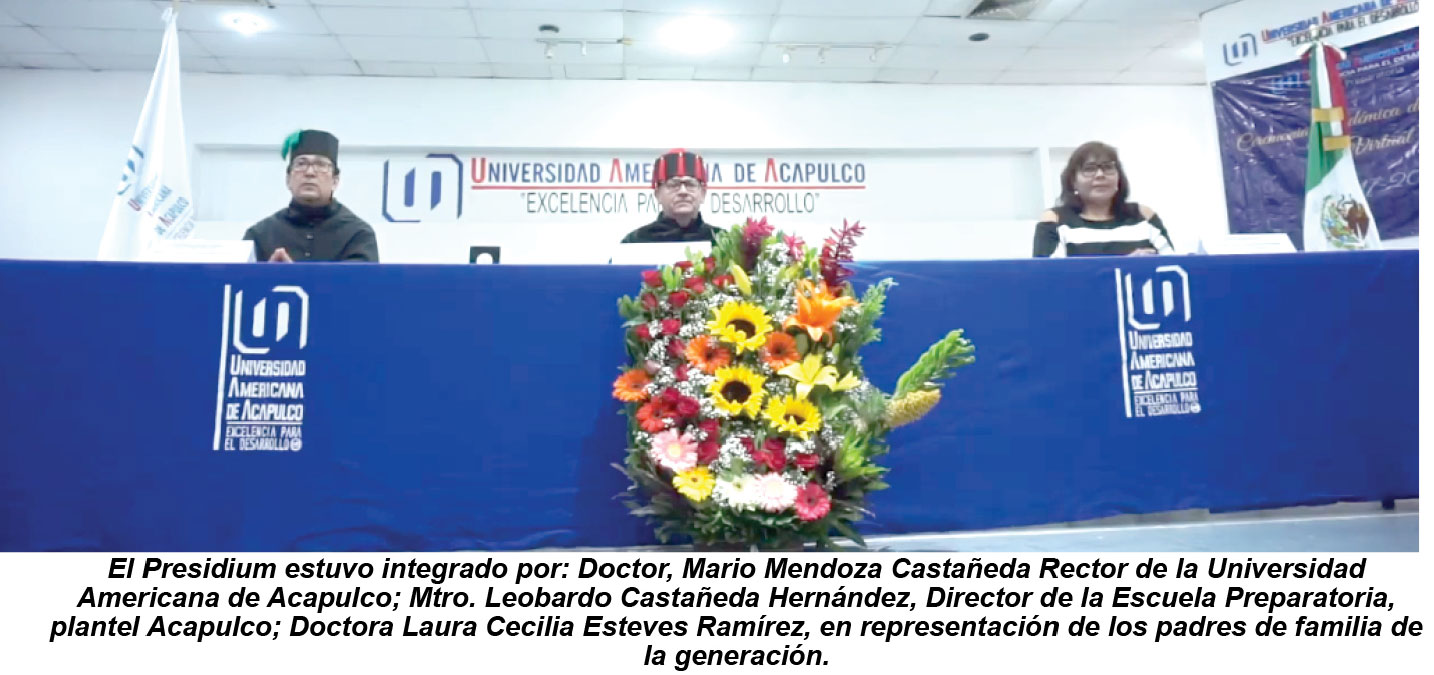 Presidieron el presídium el Doctor, Mario Mendoza Castañeda Rector de la Universidad Americana de Acapulco, el Mtro. Leobardo Castañeda Hernández, Director de la Escuela Preparatoria, plantel Acapulco, la Doctora, Laura Cecilia Esteves Ramírez, en representación de los padres de familia de la generación.
