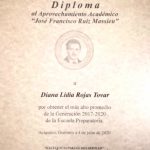 Se hizo entrega virtual de la Medalla ¨José Francisco Ruíz Massieu” a Rojas Tovar Diana Lidia, por haber obtenido el mejor promedio de la generación durante sus tres años de estudio en la Escuela Preparatoria UAA.