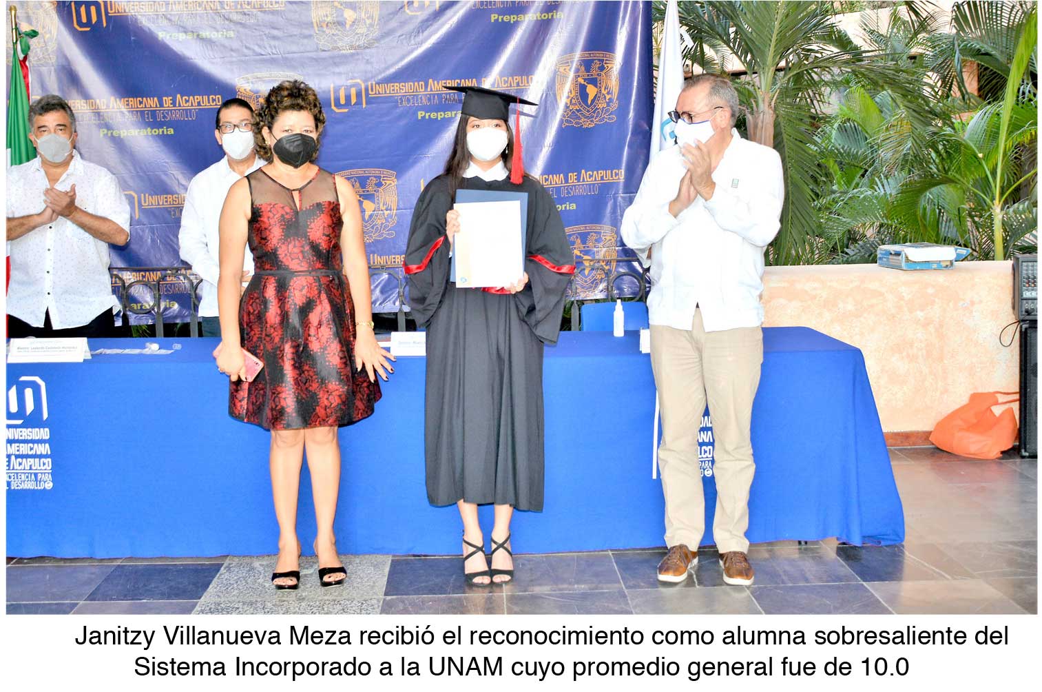 Esa misma tarde se hizo un reconocimiento especial a la alumna egresada Janitzy Villanueva Meza quien recibió el reconocimiento expedido por La Universidad Nacional Autónoma de México (UNAM) dicha universidad, al término de los estudios de cada generación, otorga una distinción a los alumnos sobresalientes de las escuelas incorporadas a la UNAM en todo el país.