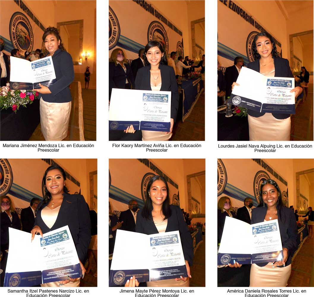 Se tuvo también la participación artística de las alumnas de 1er Grado de la Licenciatura en Educación Preescolar, coordinada por la Mtra. Angel Guerrero Rodríguez y de la poetisa Aureamar para posteriormente pasar a la entrega de la Carta de Pasante a los egresados de Bachillerato, Licenciaturas y Maestrías.