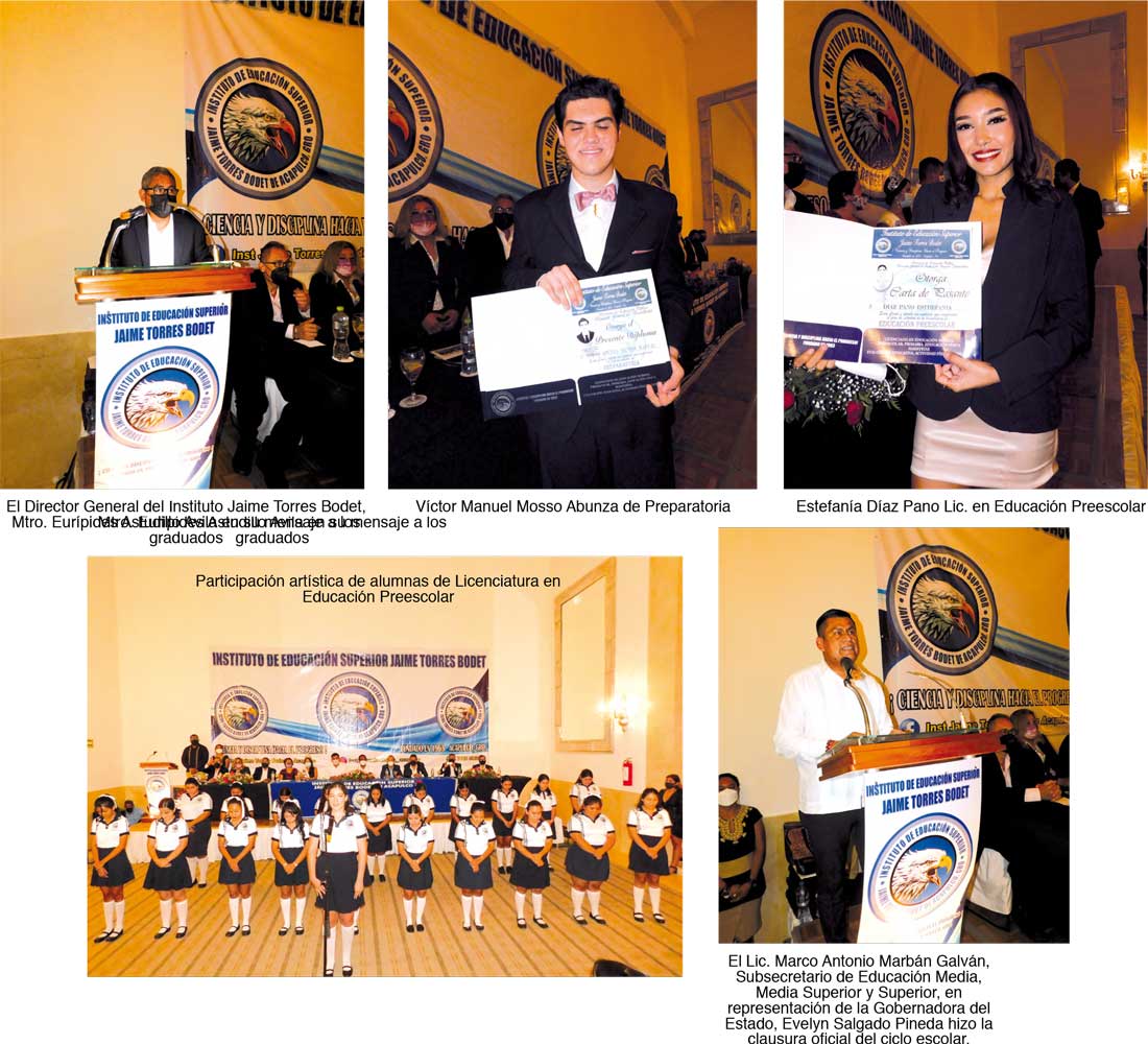 En una lucidora ceremonia de terminación, el pasado viernes 22 de julio, se llevó a cabo la Graduación de Bachillerato; Licenciaturas en: Preescolar, Primaria, Educación Física; y Maestrías en: Educativa y Formación Deportiva del Instituto de Educación Superior Jaime Torres Bodet en el Hotel Emporio.