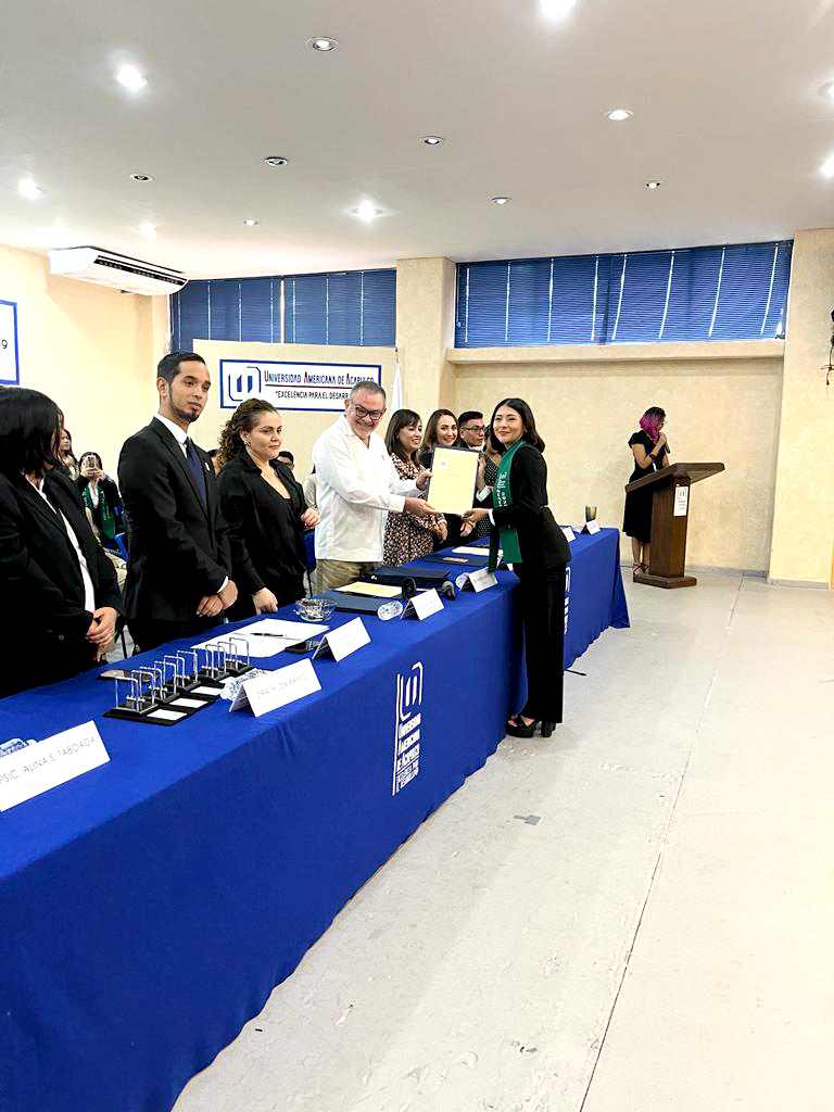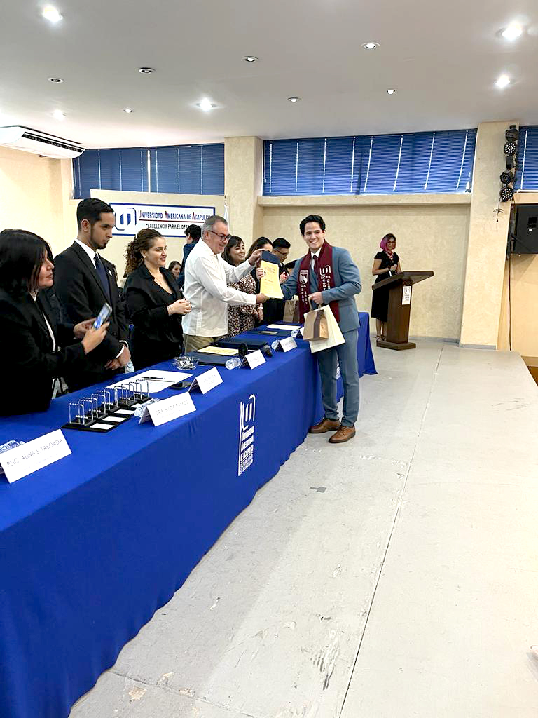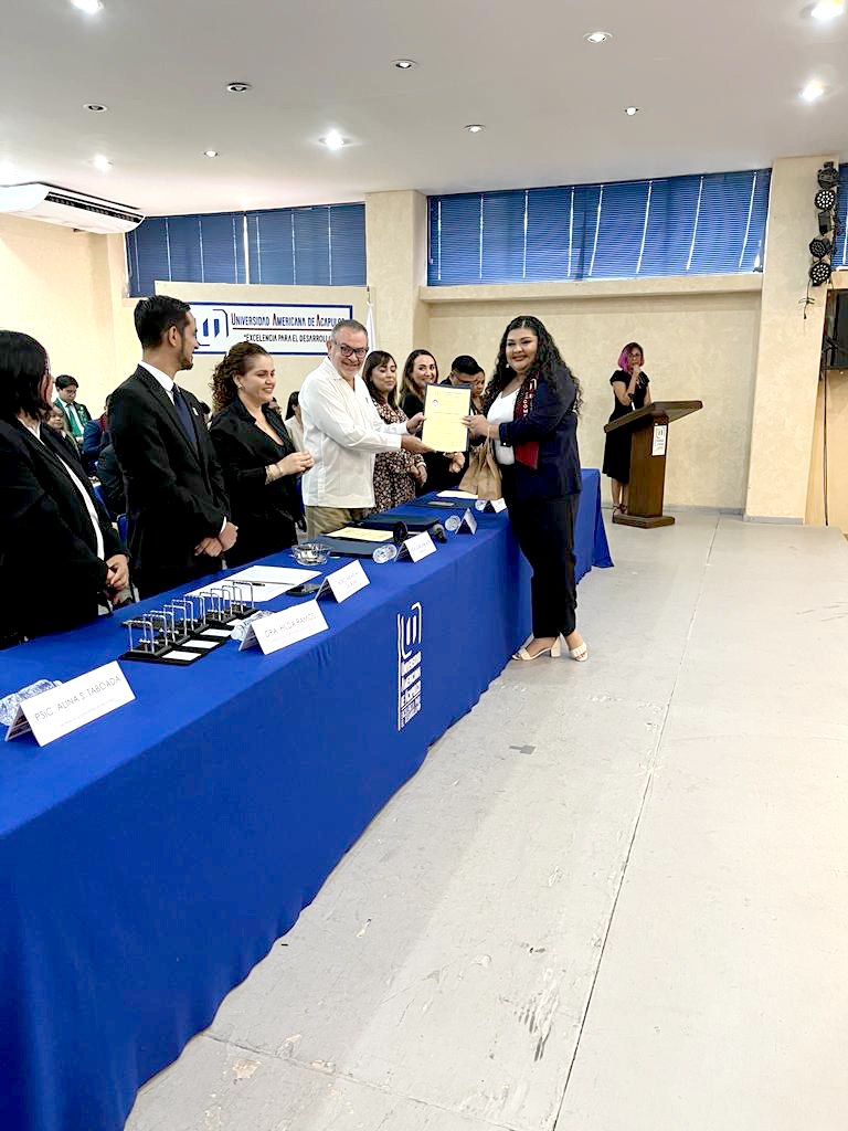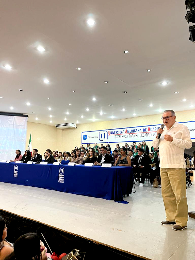 El presidium, encabezado por el Rector de la Universidad Americana de Acapulco, Dr. Mario Mendoza, estuvo también integrado por la Mtra. Carolina Jaspe López, Dra. Hoxmayra Miranda, Mtro. Rafael Alberto Salazar, Arq. Karen Plascencia, Dra. Hilda Lizbeth Ramos, Mtro. Pedro Salmerón y Psic. Alina Stefanny Taboada.