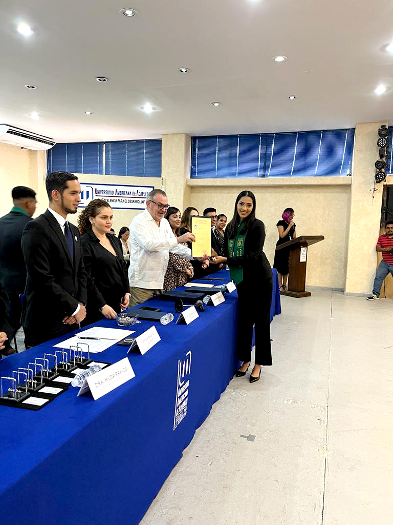 En una emotiva ceremonia, el pasado viernes 6 de octubre, se llevó a cabo el acto académico de terminación en las Licenciaturas Cuatrimestrales de la Universidad Americana de Acapulco, en el auditorio Guillermo Soberón en sus propias instalaciones