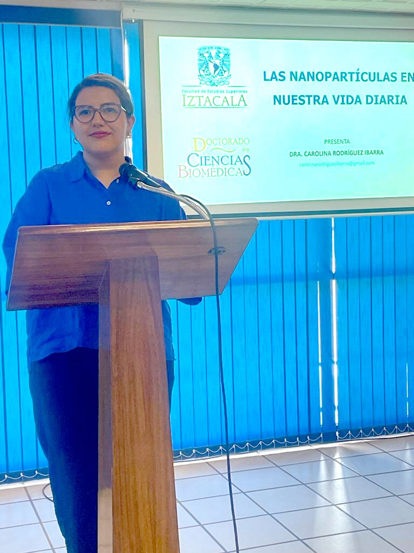 El pasado 8 de mayo se presentó en el aula Magna del Instituto Tecnológico de Acapulco la conferencia “Las Nanopartículas en la vida diaria” impartida por la Dra. Carolina Rodríguez Ibarra, egresada del Doctorado en Ciencias Biomédicas e integrante del grupo de investigadores de la Unidad de Biomedicina de la Facultad de Estudios Superiores Iztacala de la Universidad Nacional Autónoma de México (UNAM).
