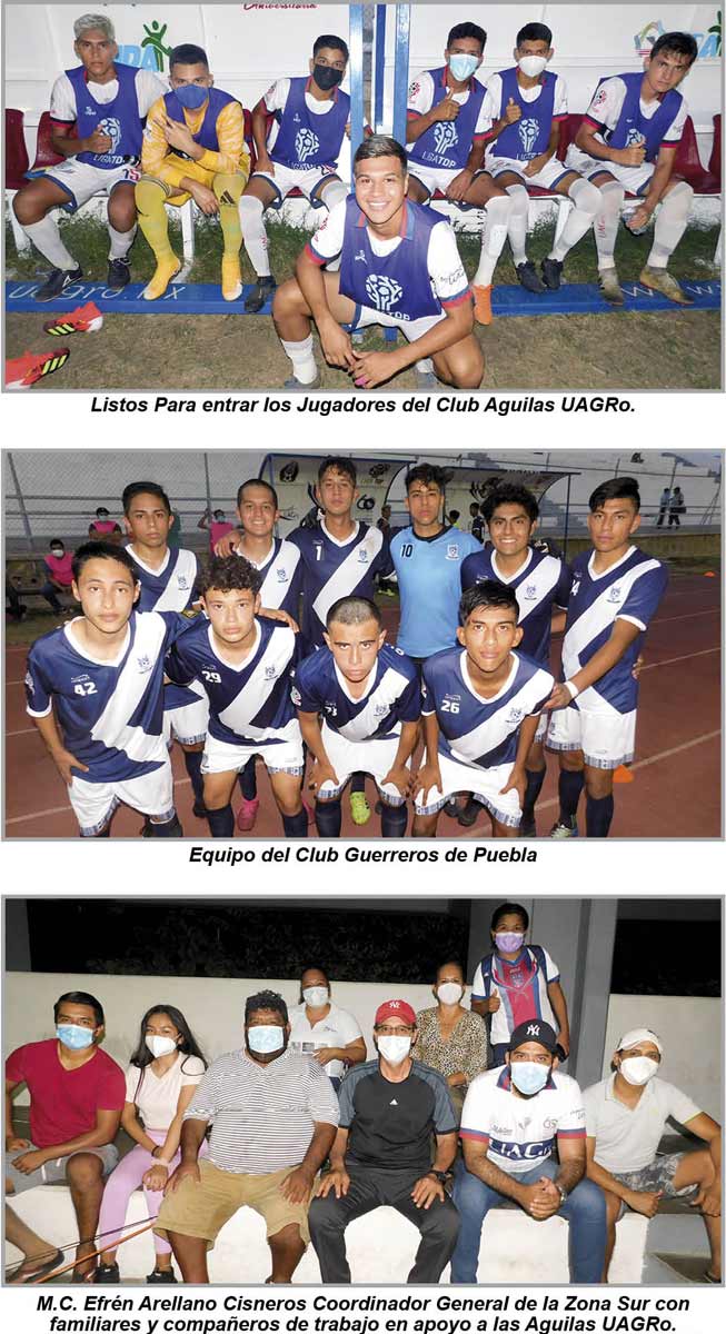 El Sábado 8 de mayo fue una gran tarde de futbol para las águilas UAGro, se llevó a cabo el encuentro de futbol entre los Clubes Aguilas UAGro Vs Guerreros de Puebla a las 19:00 Hrs. en la Unidad Deportiva Acapulco en la Jornada 20 de la temporada 2020-2021, de la Tercera División de la Liga TDP de la Federación Mexicana de Futbol Asociados A.C. con un marcador de 3-0 a favor de las Aguilas UAGRo.