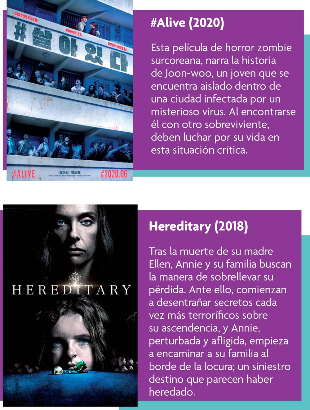 Estamos en el mes de octubre y esto nos trae una de las celebraciones más tenebrosas del año: Halloween. A falta de fiestas de disfraces este año, se puede festejar este día con un maratón de películas de terror en casa. Así que aquí les dejamos unas recomendaciones de qué ver esa noche espeluznante.