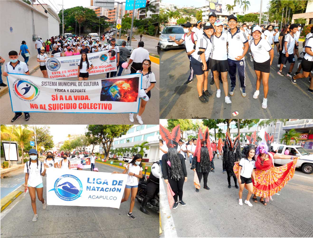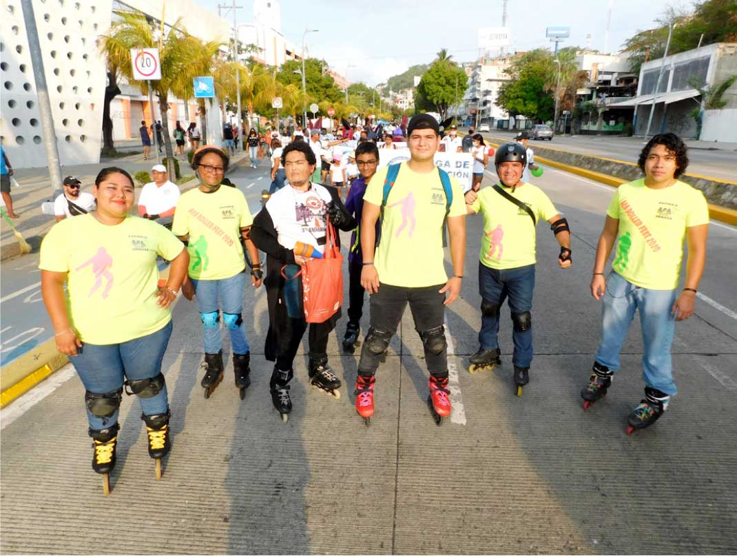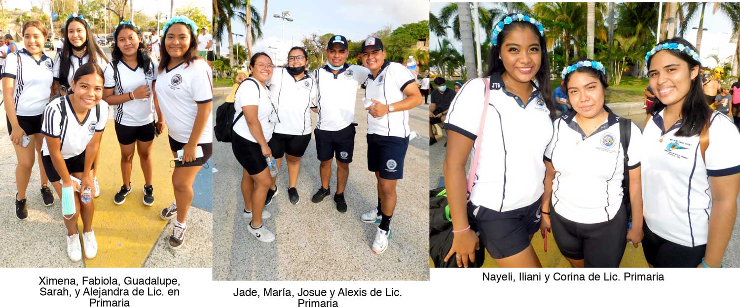 Con mucho entusiasmo caminaron los contingentes de las diferentes ramas como la Liga de Natación, Luchadores, Deportistas con Capacidades Diferentes, Patinaje Aca Roller Urbano, Egresados y Estudiantes del Instituto Jaime Torres Bodet, del Grupo Ski Acuático Internacional, Karate, entre otras, acompañados de música de viento y la danza de los Diablos, quienes animaron todo el trayecto haciéndolo más ligero y divertido.