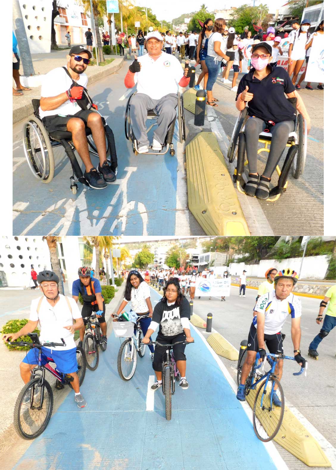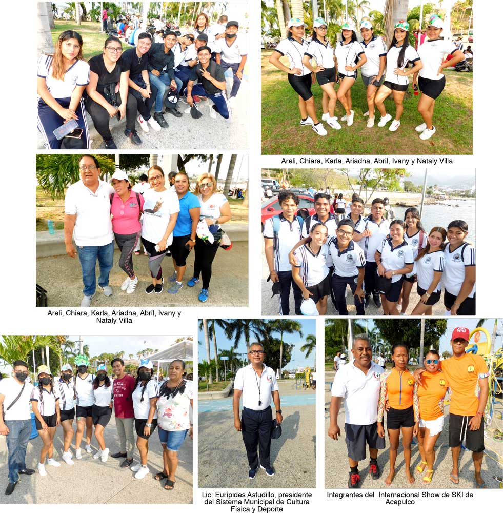 Ya en el Parque de la Reina se hicieron demostraciones de cada disciplina como fue una tabla rítmica de las estudiantes del Jaime Torres Bodet, Katas de Karate, Saltos y maniobras de patinaje, maromas por la salud que aplican en la lucha libre, prácticas en suelo de Ski Acuático y en el mar los diferentes estilos de natación.