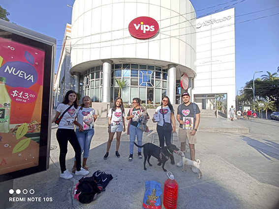 La cita fue en av. Costera y Wilfrido Massieu, afuera del centro comercial Galerías Acapulco, desde donde más de 12 voluntarios y miembros de Patitas Felices Acapulco que preside Elsa Salgado, acompañados de algunos animalitos rescatados, iniciaron el recorrido de boteo, partiendo de ahí, hasta la glorieta de La Diana.