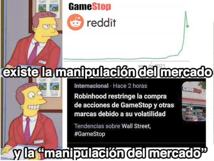 Aproximadamente por Enero de 2021 el subreddit se percató que 140% de las acciones de GameStop habían sido ventas cortas o “short”. ¿Qué es un “short”? Que los compradores habían pedido prestadas las acciones y vendido al instante, creyendo que en una semana el precio bajaría y se podrían quedar con la diferencia. En efecto, estaban apostando contra la compañía y ganando a costa de la pronta bancarrota de GameStop, incluso re-prestando acciones ya prestadas, causando el 40% “fantasma”.
