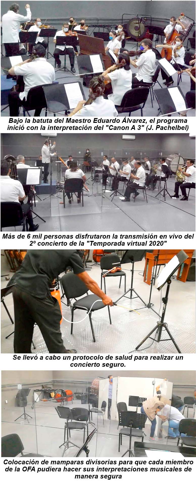 Con el apoyo y compromiso del Gobernador de Guerrero, Lic. Héctor Astudillo Flores a través de la Secretaría de Cultura a cargo del Lic. Mauricio Leyva Castrejón, más de 6 mil personas disfrutaron la transmisión en vivo del 2º concierto de la “Temporada virtual 2020” que este viernes ofreció la Orquesta Filarmónica de Acapulco (OFA) a través de la plataforma Facebook Live bajo la batuta de su director y fundador, el Maestro Eduardo Álvarez, desde el salón de ensayos “Ezequiel Mendoza”, ubicado en el interior del Teatro Juan Ruiz de Alarcón del Centro Internacional Acapulco.