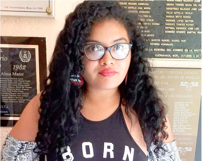*Brenda Margarita Soto López, originaria de Guadalajara, criada en Acapulco. 25 años. Egresada de la Facultad de Psicología de la Universidad Autónoma del Estado de Morelos (UAEM). Del año 2017 al 2019 participó como voluntaria para el Observatorio de Factores Psicosociales y Bienestar Organizacional de la UAEM. En el 2018 realizó prácticas en la Clínica de Salud Mental del Centro de Investigaciones Transdisciplinar en Psicología, como psicóloga evaluadora clínica. En el 2019 se desempeñó como psicóloga auxiliar evaluadora forense en el Centro de Convivencia Familiar en Acapulco; y actualmente es auxiliar en el departamento de Bolsa de Trabajo de la Cámara de Comercio de Guadalajara.