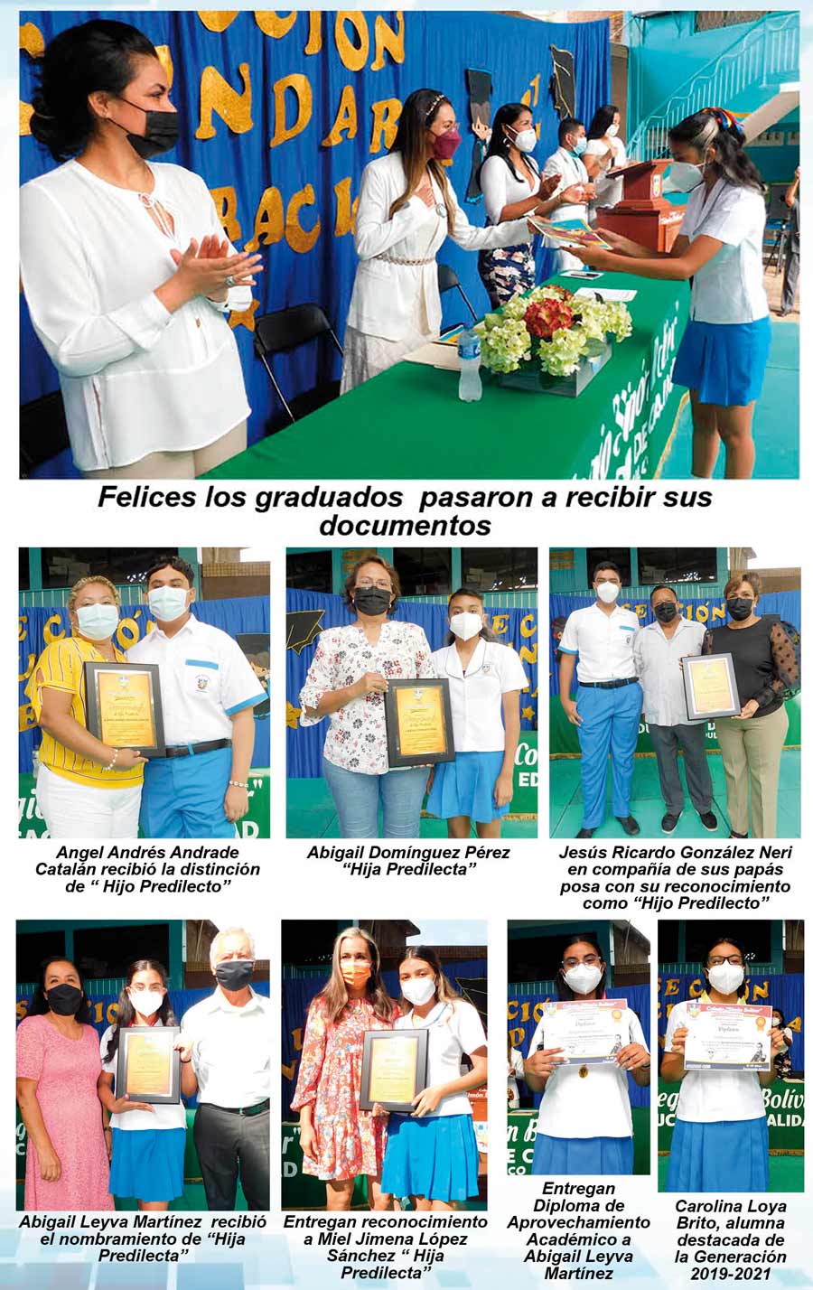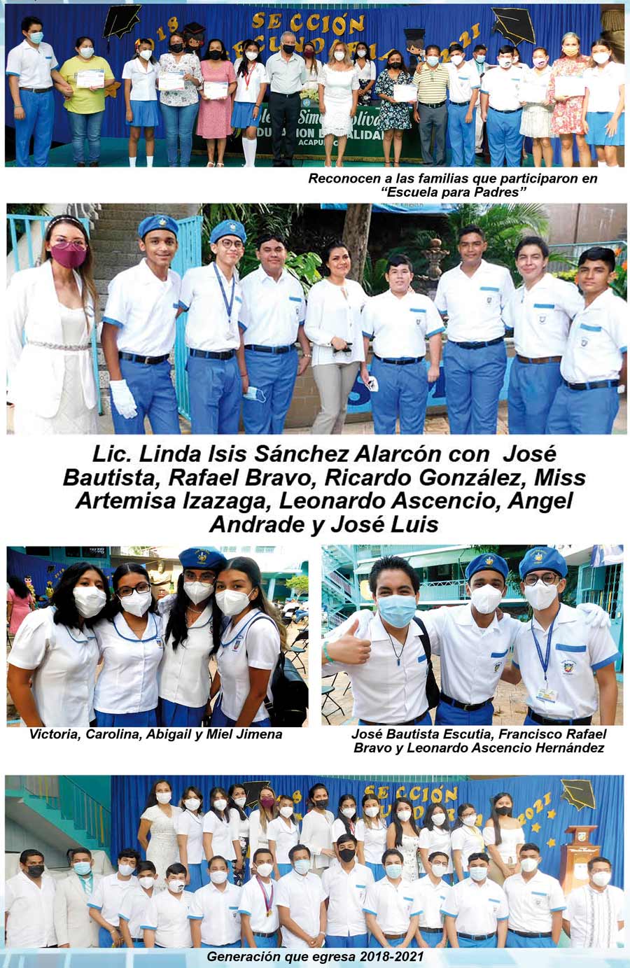 Antes de clausurar el ciclo escolar 2020- 2021, la Lic. Linda Isis Sánchez Alarcón, felicitó a los graduados por haber concluido satisfactoriamente su educación mediabásica, de la cual la mitad fue de manera virtual. Reconoció y agradeció el empeño de los maestros en este año escolar.