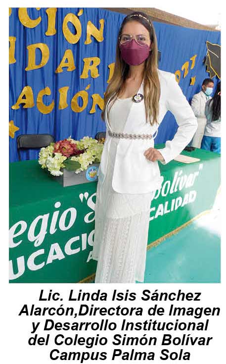 Linda Isis Sánchez dijo que el Colegio Simón Bolívar Campus Palma Sola Bilingüe, continúa con la capacitación constante al profesorado para enfrentar los retos que se presenten; así como también cuentan con la tecnología necesaria para continuar con las clases en línea, híbridas o presenciales, según lo marquen las autoridades.