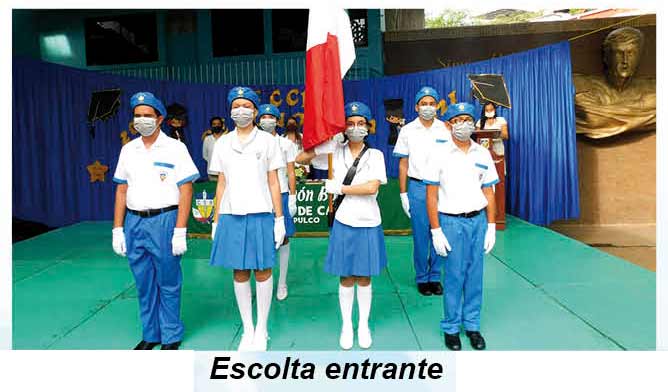 En la explanada de la institución, guardando la sana distancia, se colocaron las sillas y el presidium, que esa mañana estuvo integrado por directivos de la institución: Lic. Linda Isis Sánchez Alarcón, Dir. de Imagen y Desarrollo Institucional; Profra. Artemisa Izazaga Mendoza, Coordinadora de Inglés en la Sección Secundaria; Psic. Judith Cruz Montes Coordinadora de la Sección Secundaria .