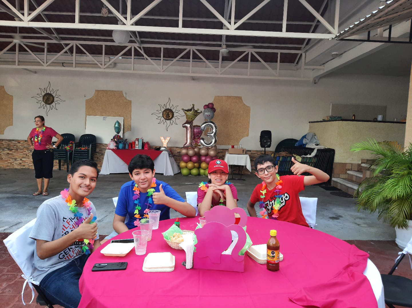 Los chicos de secundaria escucharon música de sus redes sociales a la hora de la cena, unos deliciosos tacos al pastor; pero antes, se divirtieron mucho con los juegos que organizó la mamá de Yvanna, entre ellos: el barco se hunde, las sillas, izquierda-derecha, entre otros.